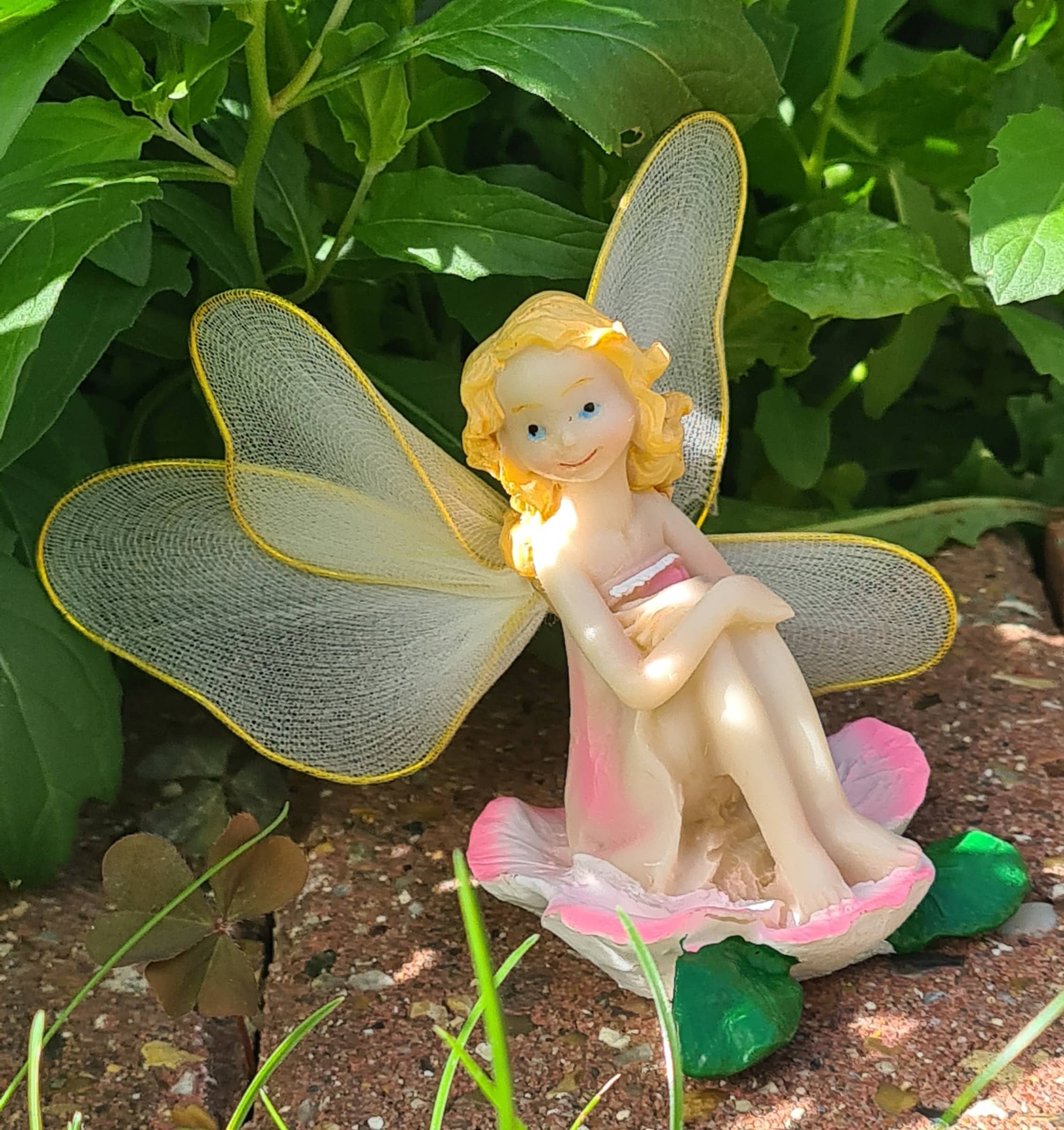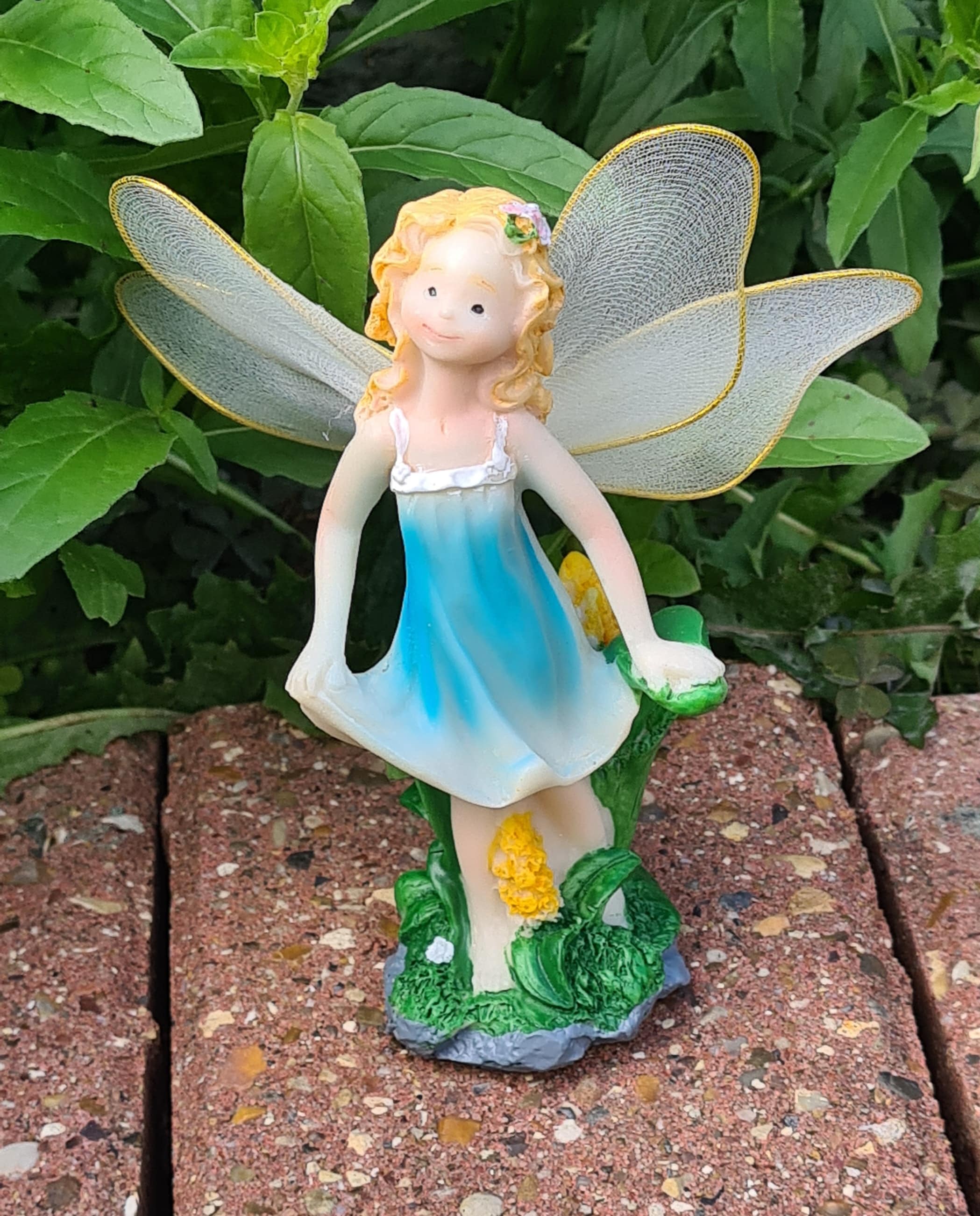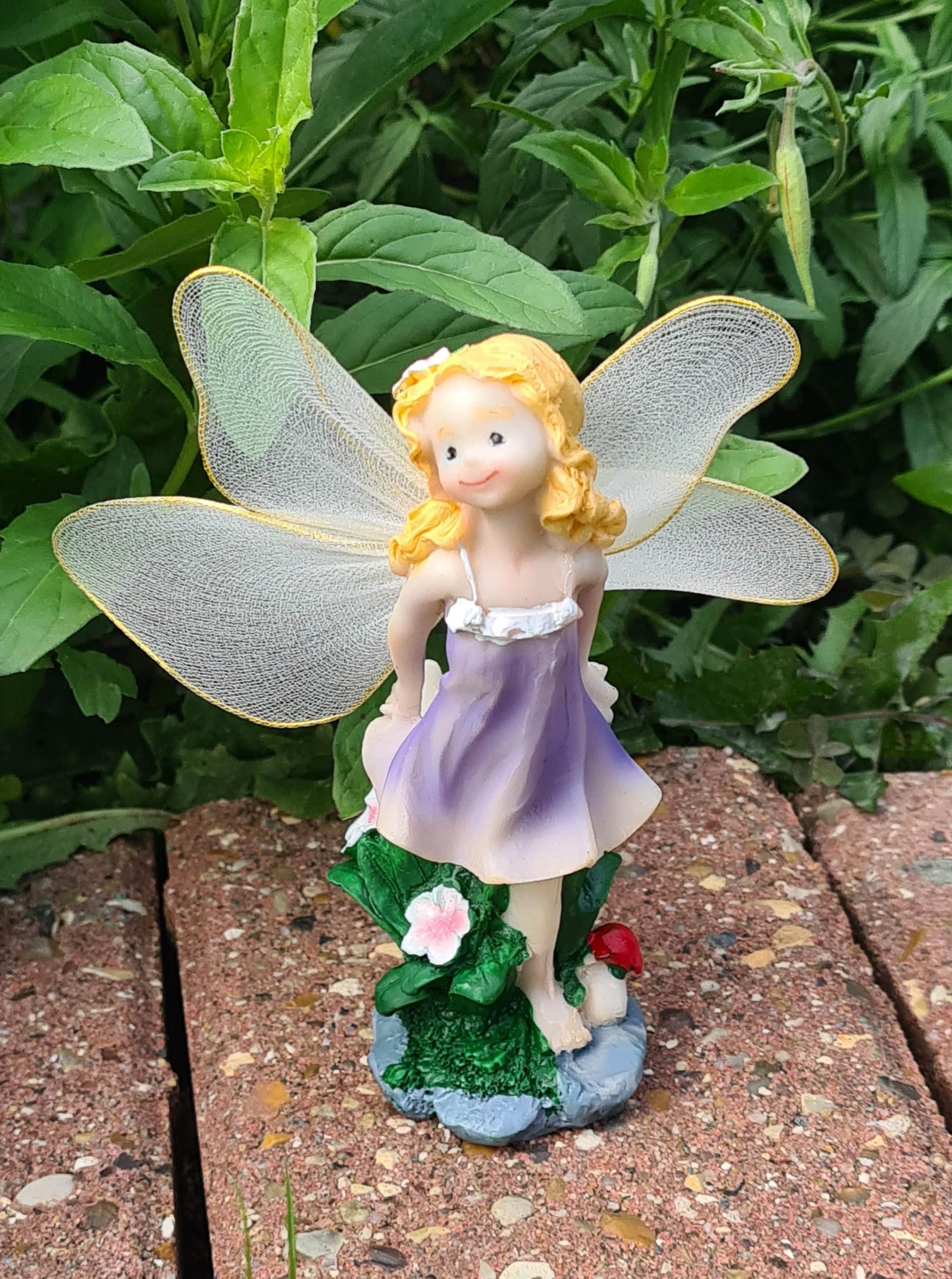 Our fairies with net wings bring delicate beauty to any fairy garden. Available in blue, lilac, yellow, and pink, each fairy features a unique pose with flowers, leaves, or toadstools. Perfect for displays, collections, or gifts, they add colour, charm, and enchanting detail to magical miniature scenes.