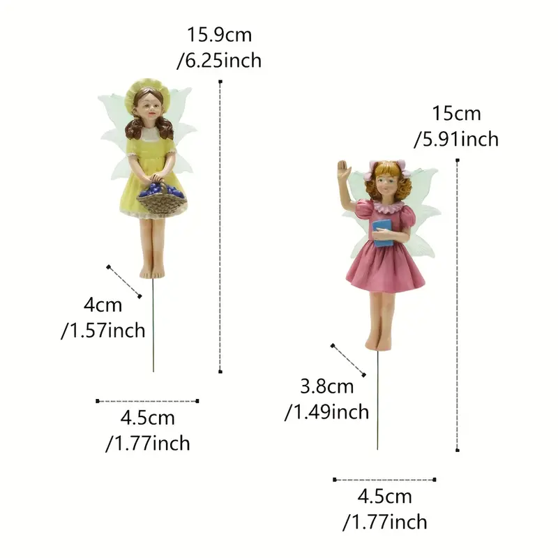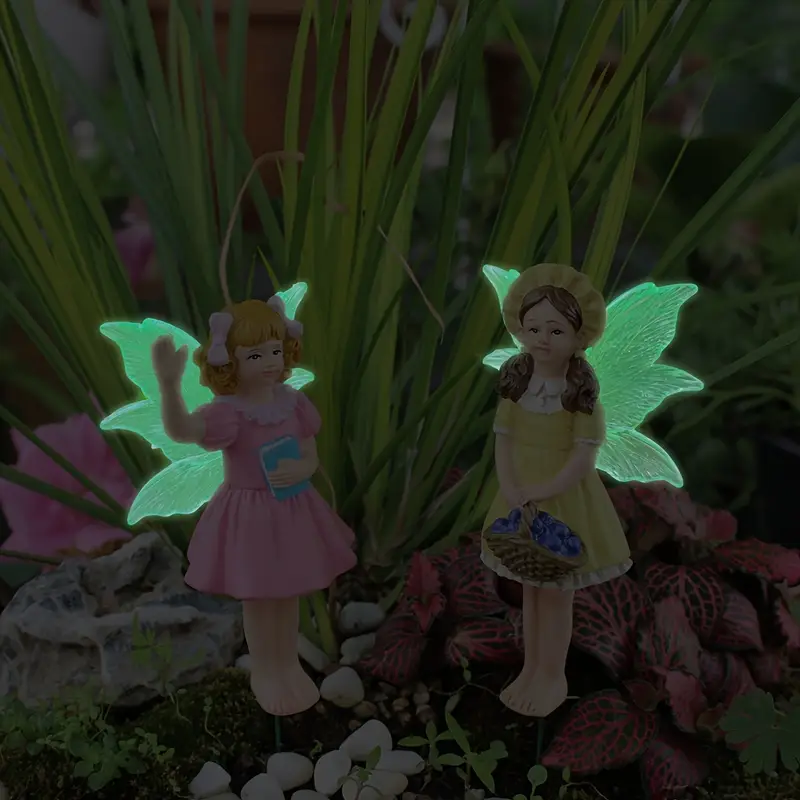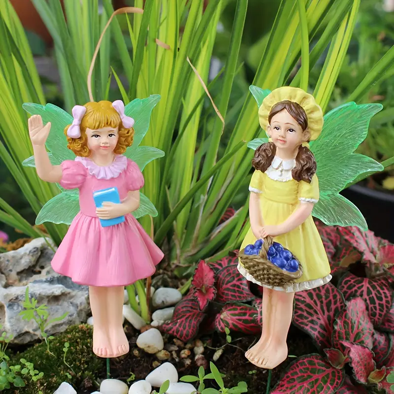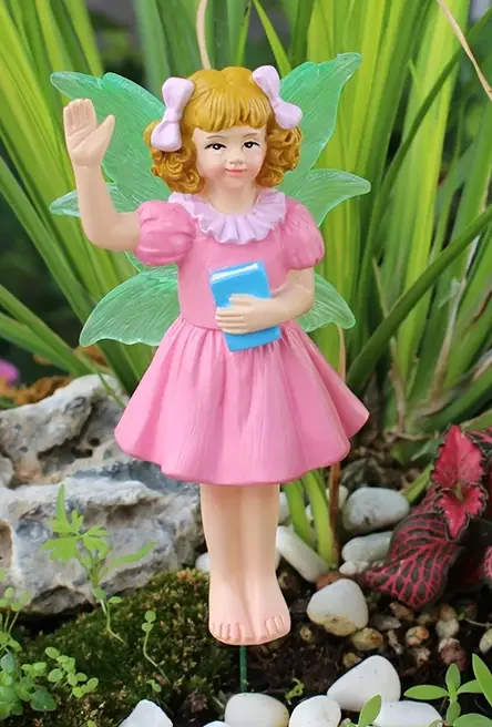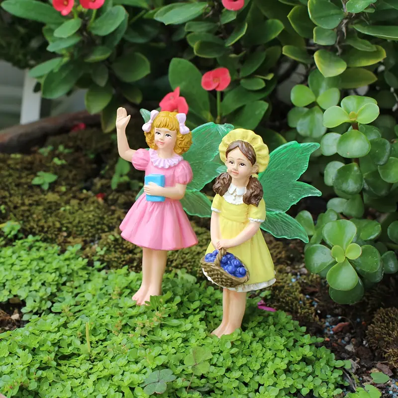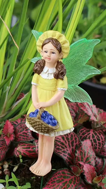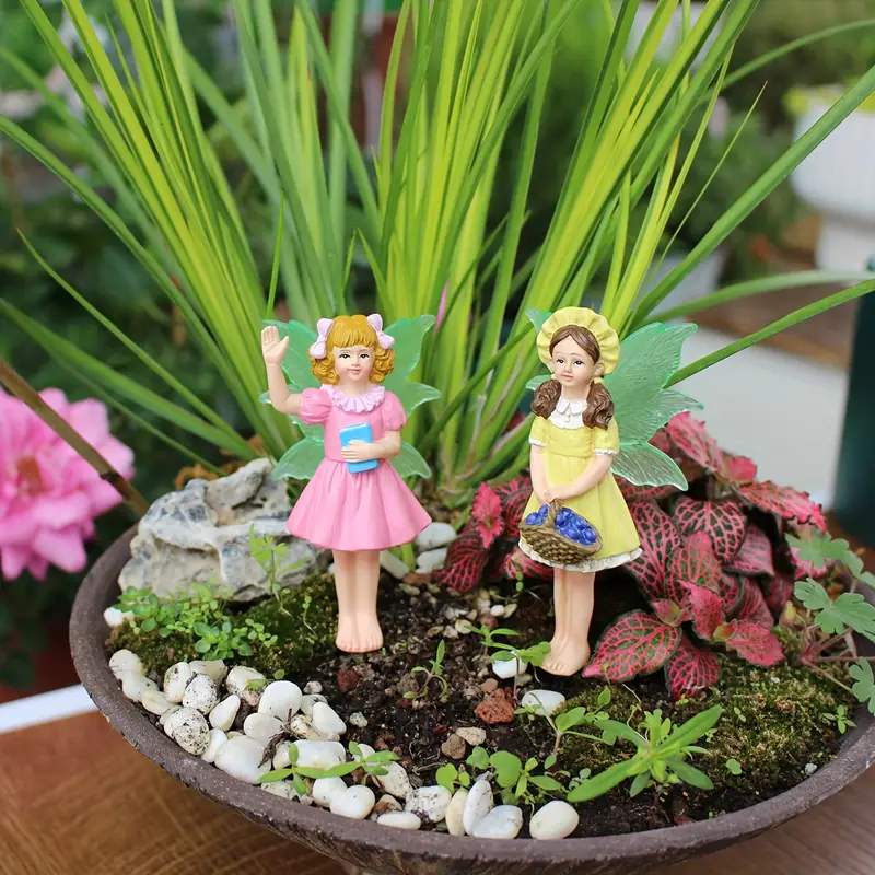 Our Spring Flower Fairies bring magic to your fairy garden! A pink fairy gently holds a book, ready to share fairytales, while a cheerful yellow fairy carries a basket full of fruit.These fairies add charm, wonder, and seasonal sparkle to any miniature garden scene.