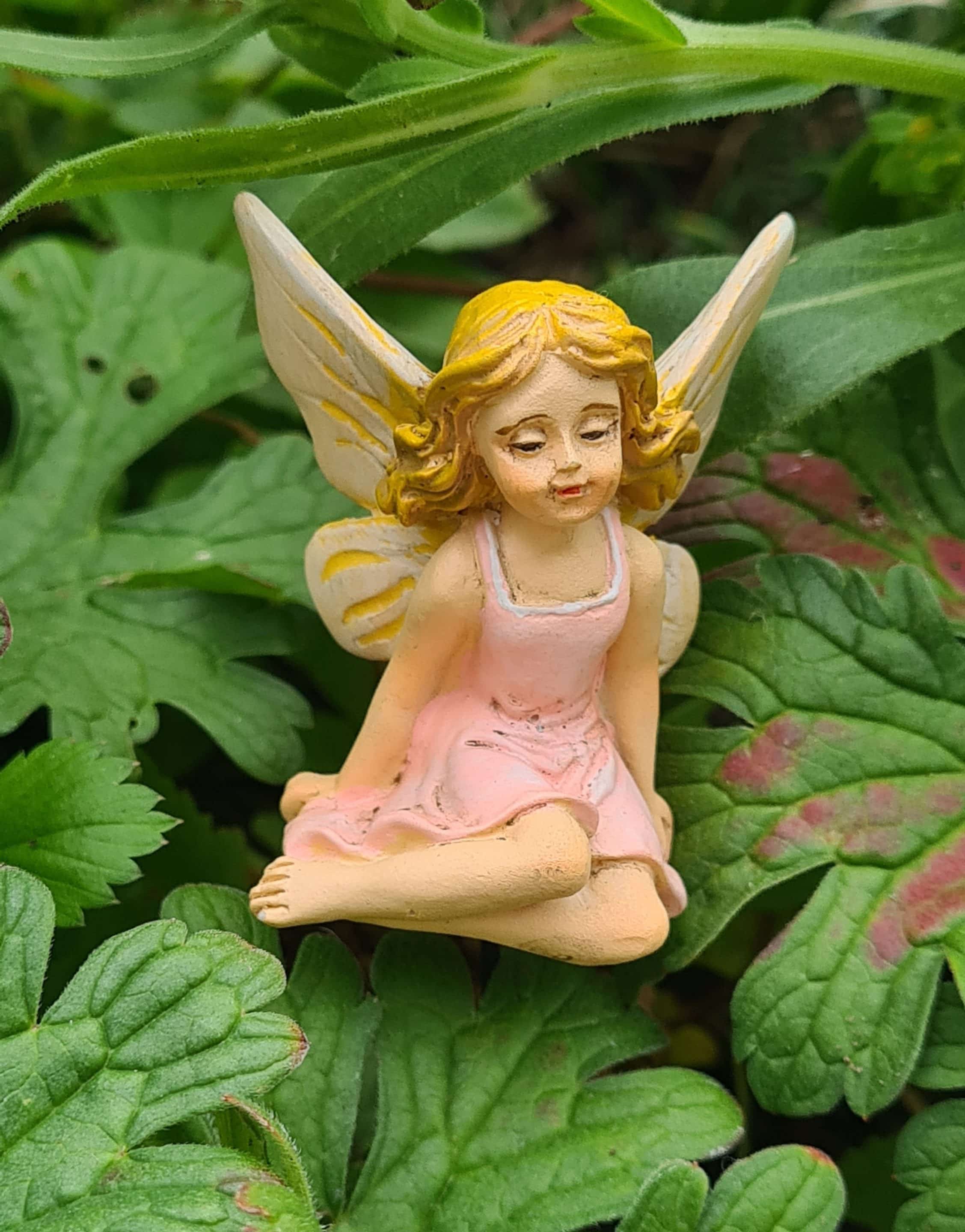 - Pink fairy with cream wings, she is sitting with her legs to the side ( 5cm high)