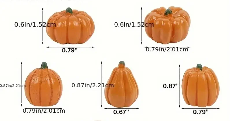 Add charm to your fairy garden or seasonal display with this delightful set of three mini orange pumpkins. Styles will vary, making each set unique. Perfect for a garden patch, autumn décor, or Halloween scenes.