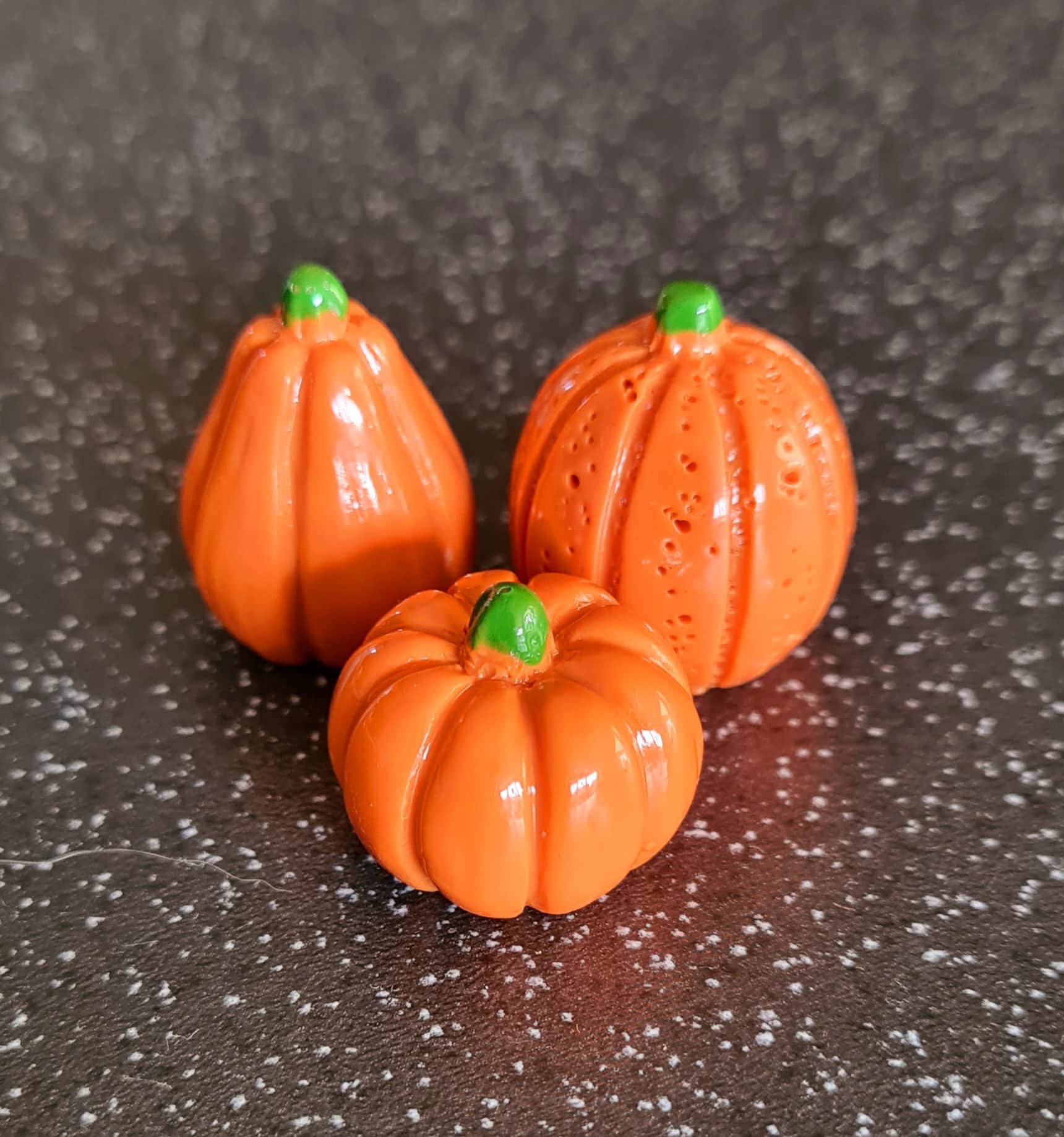 • A set of 3 mini orange pumpkins
